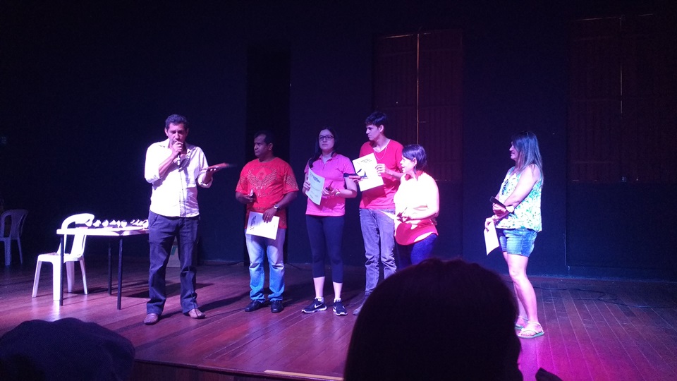 O ator e diretor Flávio Arvelos, a componente Ronilda Carvalho Arvelos e o Grupo Teatral do UNICERP receberam homenagens da organização do evento.