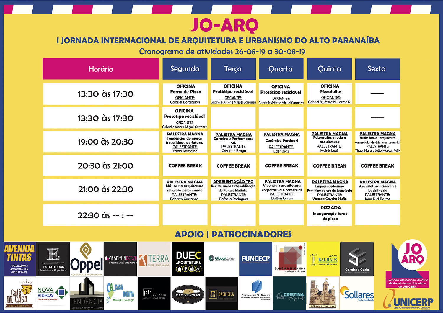 A Jo-Arq é uma realização da coordenação de Arquitetura e Urbanismo do UNICERP e docentes do curso.