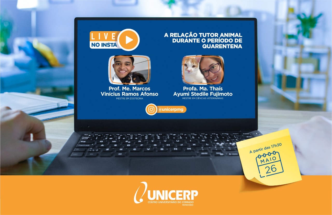 “A relação tutor animal durante o período de quarentena” será o tema da #livenoinsta que irá acontecer no Instagram do UNICERP – sigam @unicerpmg – no dia 26 de maio, a partir das 17h30. O bate papo será conduzido pelos Professores do Curso de Medicina Veterinária do UNICERP, Thaís Ayumi Stedile Fujimoto, Mestre em Ciências Vetrinárias, e com o Professor Marcos Vinícius Ramos Afonso, Mestre em Zootecnia.