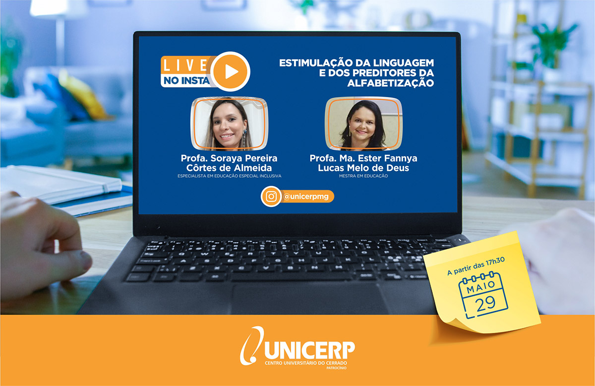 "Estimulação da linguagem e dos preditores da alfabetização” será o tema da #livenoinsta que irá acontecer no Instagram do UNICERP – sigam @unicerpmg – no dia 29 de maio, sexta-feira, a partir das 17h30. O bate papo será com as professoras do curso de Fonoaudiologia do UNICERP Soraya Pereira Côrtes de Almeida, especialista em Educação Especial Inclusiva, e Ma. Ester Fannya Lucas Melo de Deus, mestra em Educação.