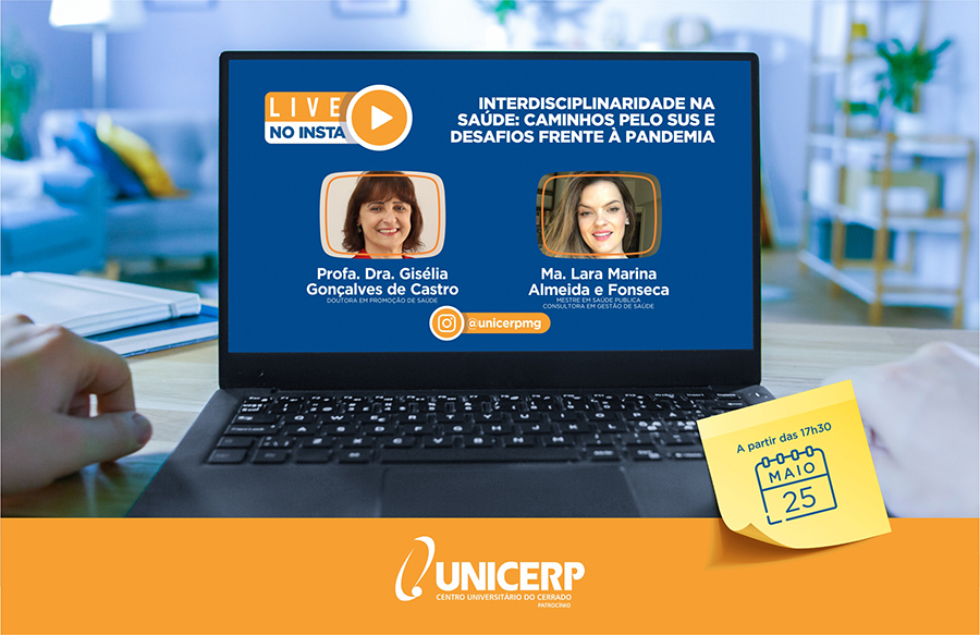 “Interdisciplinaridade na Saúde: Caminhos pelo SUS e desafios frente à pandemia” será o tema da #livenoinsta que irá acontecer no Instagram do UNICERP – sigam @unicerpmg – no dia 25 de maio, a partir das 17h30. O bate papo será conduzido pela Professora do UNICERP, Gisélia Gonçalves de Castro, Doutora em Promoção de Saúde, e como convidada especial, nossa egressa do curso de Fisioterapia e Mestre em Saúde Pública, Lara Marina Almeida e Fonseca.