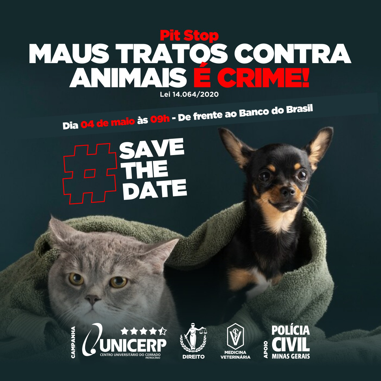 Professores e alunos dos cursos de Direito e Medicina Veterinária do Unicerp, juntamente como integrantes da Polícia Civil, estarão neste sábado, 4 de maio, a partir das 9h, no Centro da cidade para alertar e conscientizar a população sobre a importância da aplicação eficaz da Lei Sansão e a implementação efetiva de políticas públicas relacionadas à proteção animal.