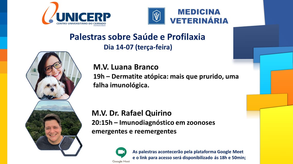 20h: “Imunodiagnóstico em zoonoses emergentes e reemergentes”, com o M.V. Dr. Rafael Quirino.