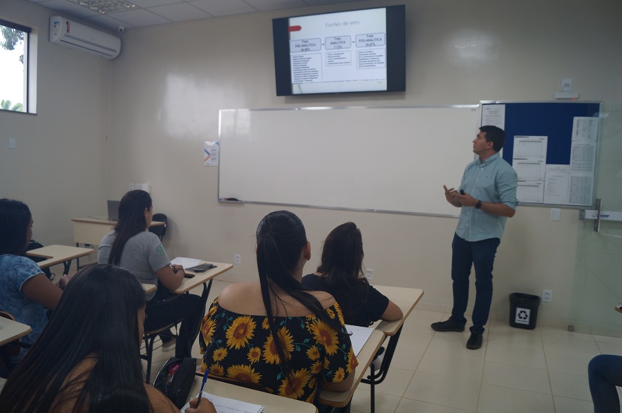 O curso abordou procedimentos teóricos e práticos, com as palestras: “Os principais exames solicitados na Rotina Clínica do Médico Veterinário” e “Falhas nas fases Pré-Analíticas, Analíticas e Pós-Analíticas nos exames laboratoriais”.