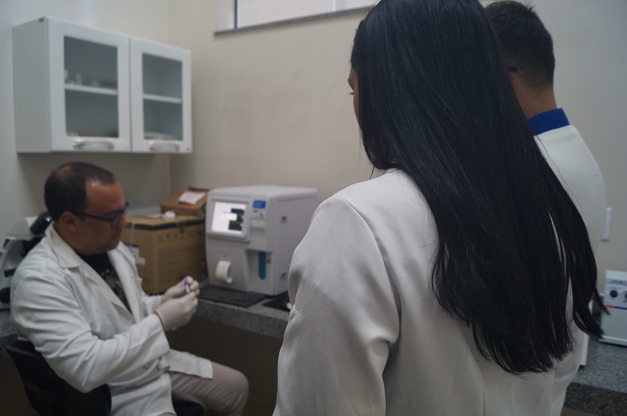 Durante os procedimentos teóricos realizados no Centro de Pesquisa do Cerrado, o biomédico e professor do UNICERP, Fabrício Nunes Ferreira, também acompanhou os alunos para orientar a utilização e manejo corretos dos aparelhos laboratoriais e interpretação dos exames.