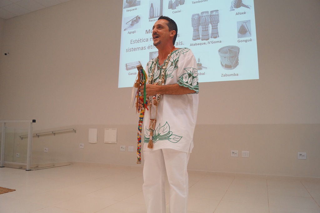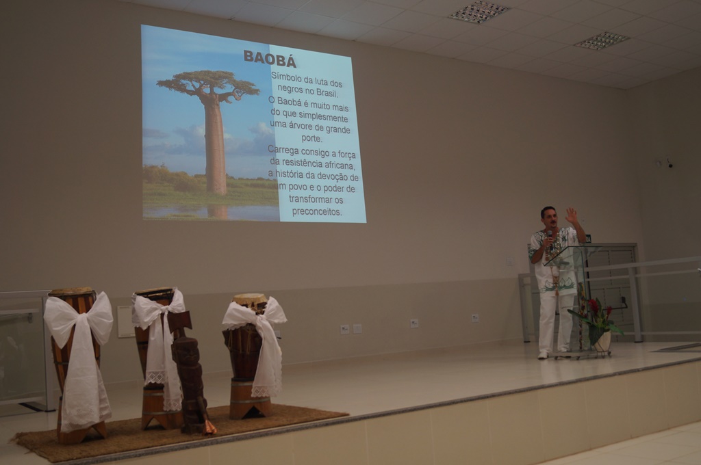O palestrante, reconhecido no santo como Júnior de Madé, é sacerdote da Comunidade Omolokô de Patrocínio/MG, localizada no bairro Manuel Nunes. Ele traçou as influências dos povos oriundos da África na formação cultural do brasileiro, explanando sobre a religiosidade, os simbolismos da sabedoria Bantu, a introdução de termos na língua oficial do Brasil, a música e os instrumentos musicais, a culinária, os adornos e o respeito à natureza.