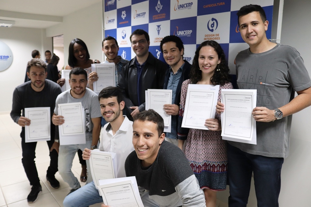 Os formandos de diversos cursos do UNICERP receberam o certificado de conclusão.