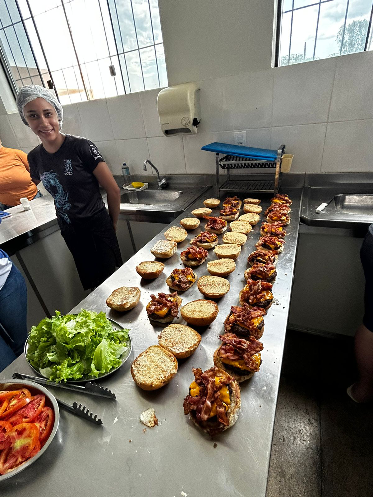 Com o objetivo de fortalecer os laços de responsabilidade social com a comunidade local e estreitar o apoio à formação das pessoas que fazem parte dela, a coordenadora do curso de Nutrição, Andreia Lourenço, a professora Gabriela Melo, e o coordenador dos projetos de Extensão do Unicerp, Kássio Amaral, ensinaram o passo a passo para criar os hambúrgueres deliciosos!