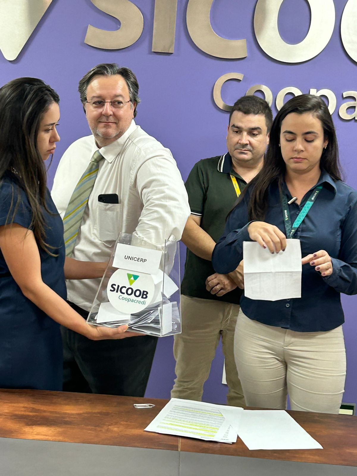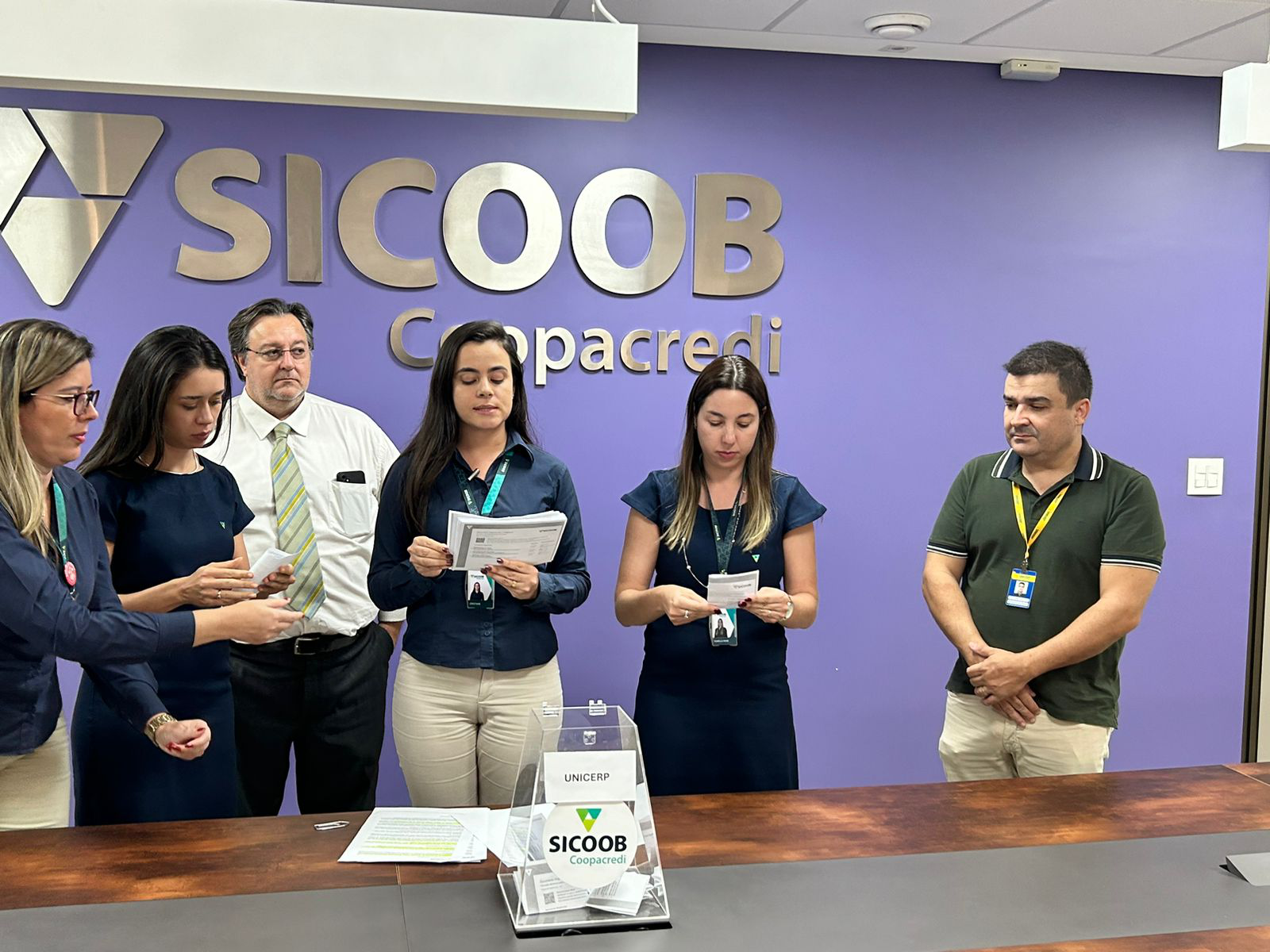 Na tarde desta quarta-feira (06), o Sicoob Coopacred sorteou 30 bolsas de estudos em parceria com o Unicerp.