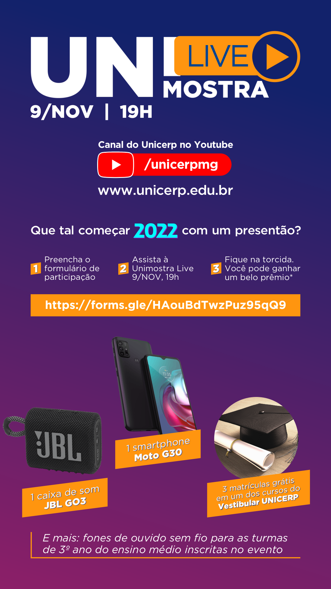 Clique aqui, preencha o formulário para concorrer a um dos prêmios da Unimostra Live.