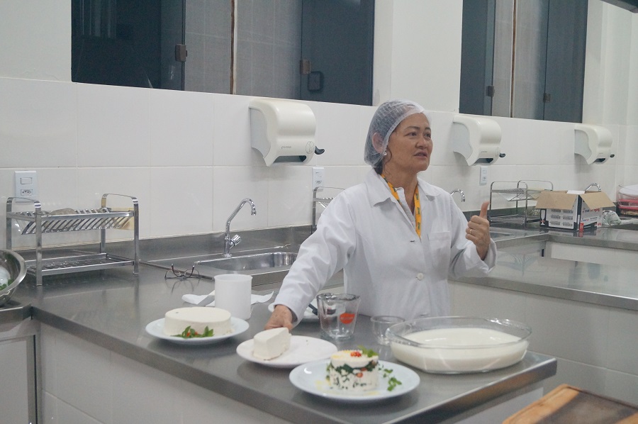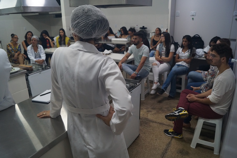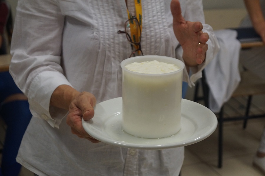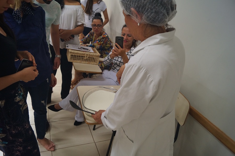 Encerrando a semana, na sexta-feira, 30, os participantes estiveram presentes na oficina “Tecnologia empregada em diversos tipos de queijos”, realizada no Laboratório de Técnica Dietética. Foram produzidos o queijo minas frescal e a ricota com e sem tempero. A oficina foi ministrada pela Profa. Dra. Sonia Yasuko e pelas docentes Stephania Dalva e Andreia Cristina. Como finalização, os alunos puderam fazer a harmonização dos queijos com diferentes tipos de acompanhamentos, como mel, geleia de pimenta, dentre outros.