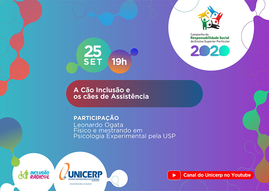 Acompanhe a palestra com o físico e mestrando em Psicologia Experimental pela USP Leonardo Ogata que abordará o tema "A Cão Inclusão e os cães de Assistência". A apresentação faz parte da Campanha de Responsabilidade Social de 2020, cujo tema é a Inclusão das Pessoas com Deficiência.