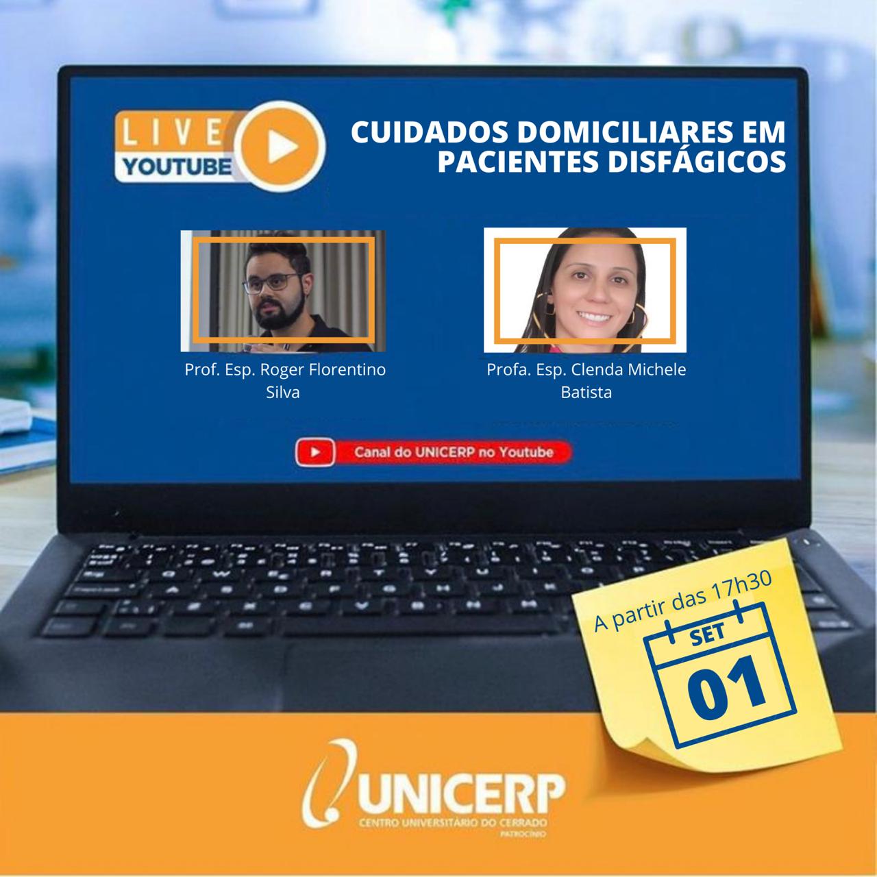 Palestra com os fonoaudiólogos Clende Michelle Batista e Roger Florentino Silva, apresentando o tema "Cuidados domiciliares em pacientes disfágicos".