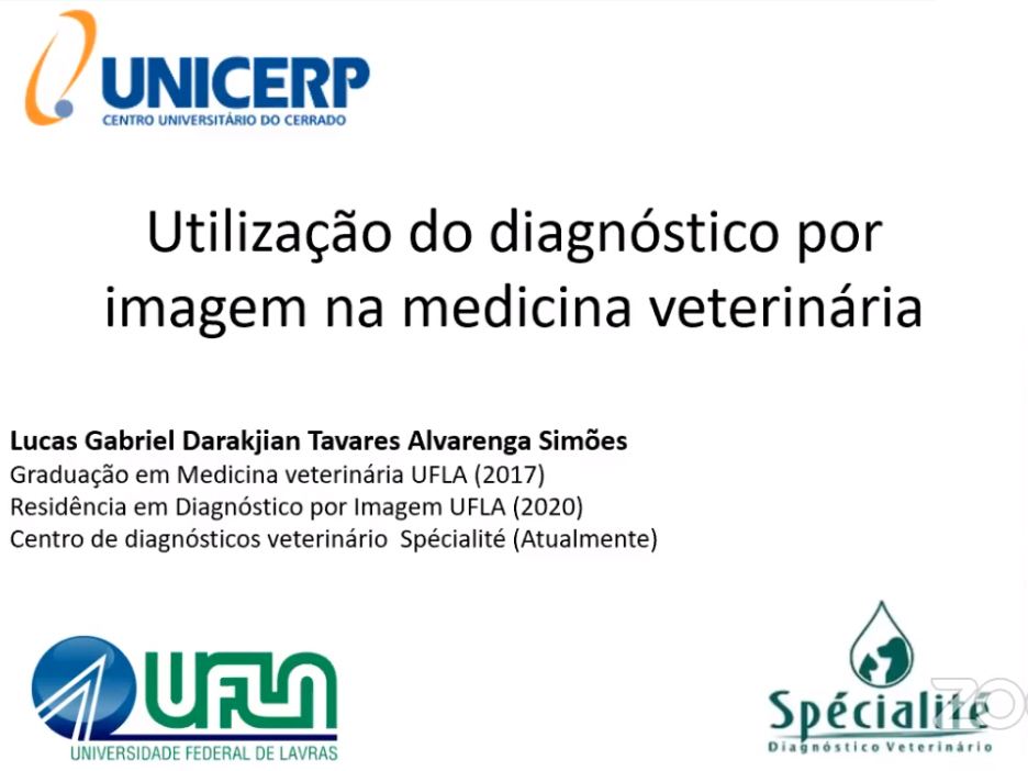 Em comemoração ao Dia do Médico Veterinário, celebrado no dia 9 de setembro, o curso de Medicina Veterinária do UNICERP promove a palestra "Métodos de Diagnóstico por Imagem na Medicina Veterinária" com o médico veterinário Esp. Lucas Darakjian Tavares Simões.