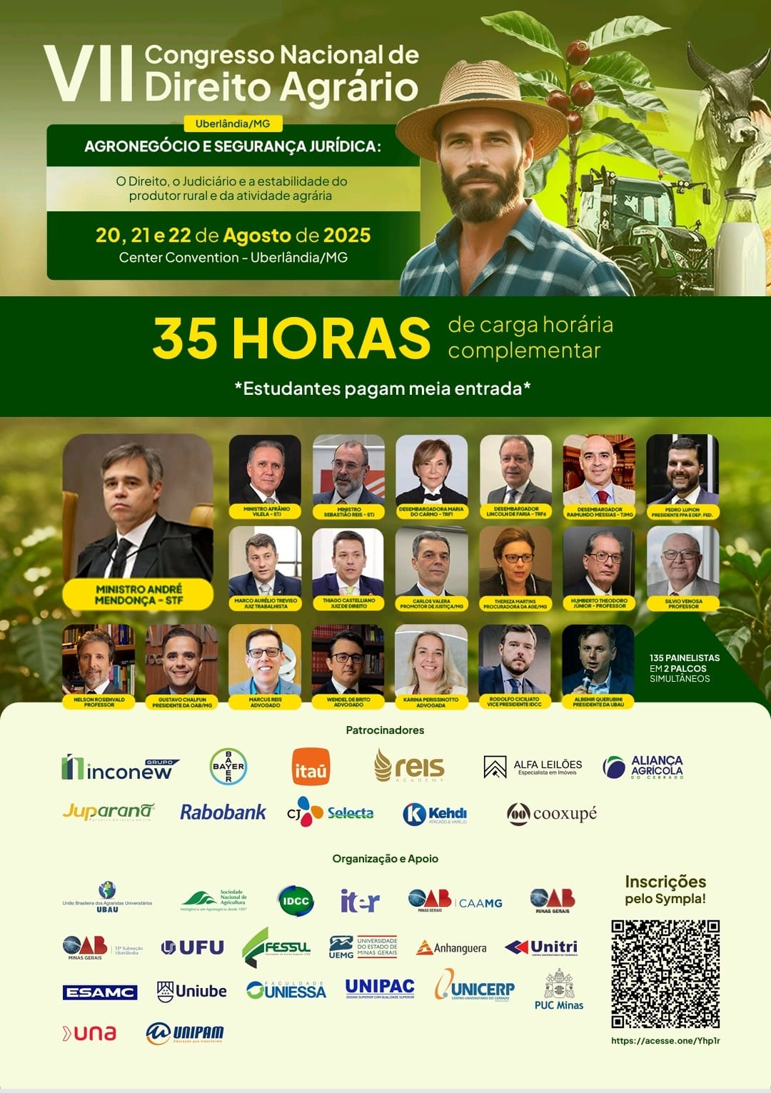 Serão 35 horas de carga horária complementar, com meia entrada para estudantes, distribuídas em 135 painéis temáticos e dois palcos simultâneos, abordando temas jurídicos, econômicos e técnicos de relevância nacional.