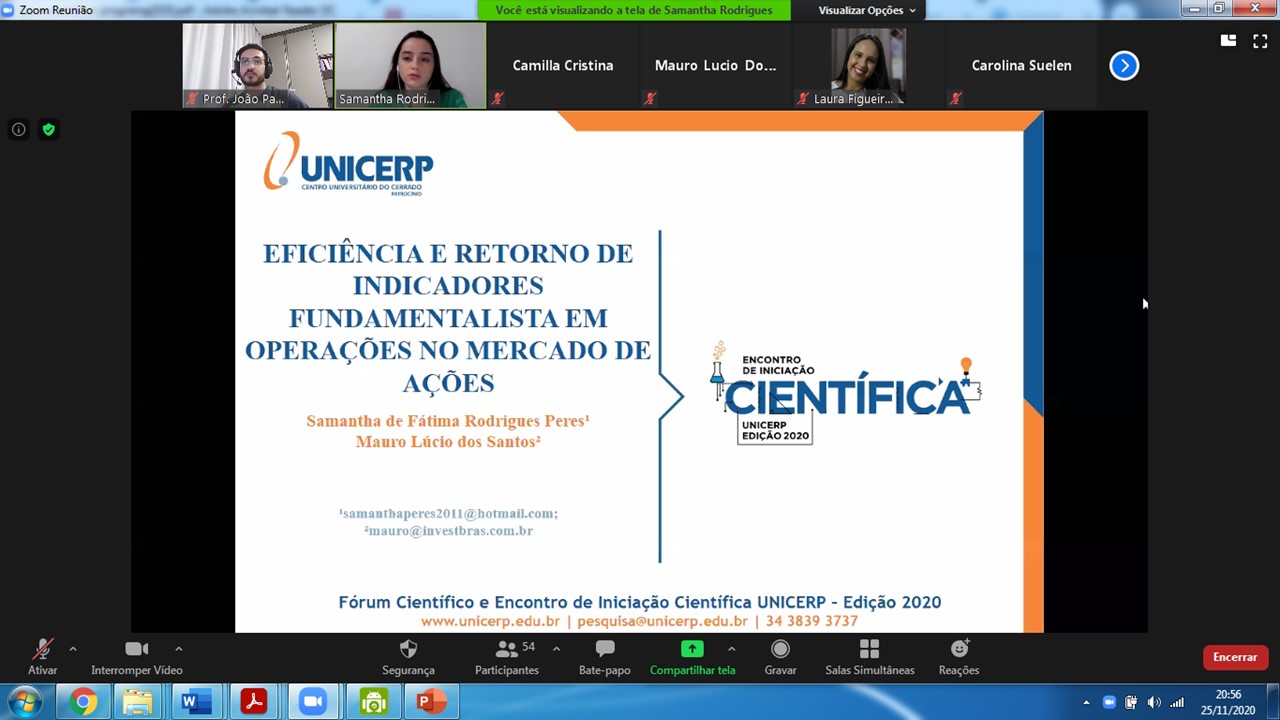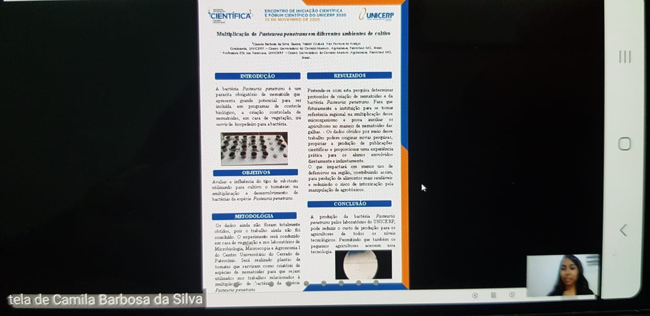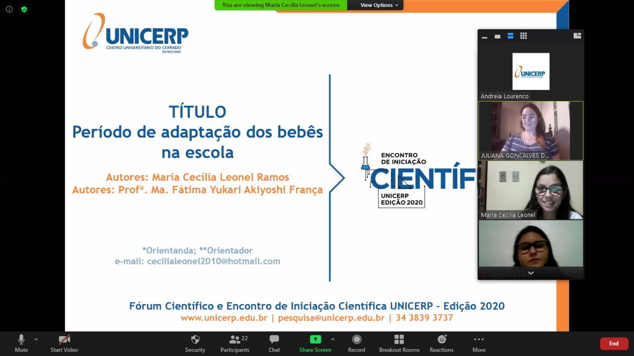 Na última quarta-feira, 25 de novembro, ocorreu o Fórum Científico e o Encontro de Iniciação Científica do UNICERP, edição 2020. O evento ocorreu em formato inteiramente online, com transmissão feita pelo canal do Unicerp no Youtube. Foram mais de 1.330 participantes inscritos, e 219 trabalhos deferidos com a apresentação em formato de banner e oral.