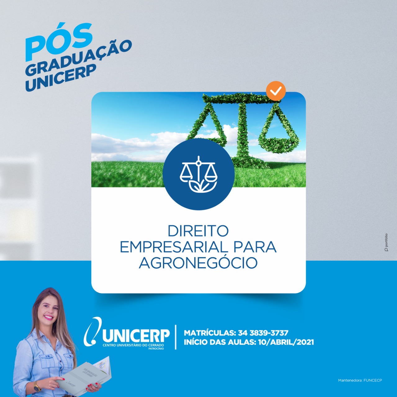 A Pós-Graduação em DIREITO EMPRESARIAL PARA AGRONEGÓCIO está com as inscrições abertas.
