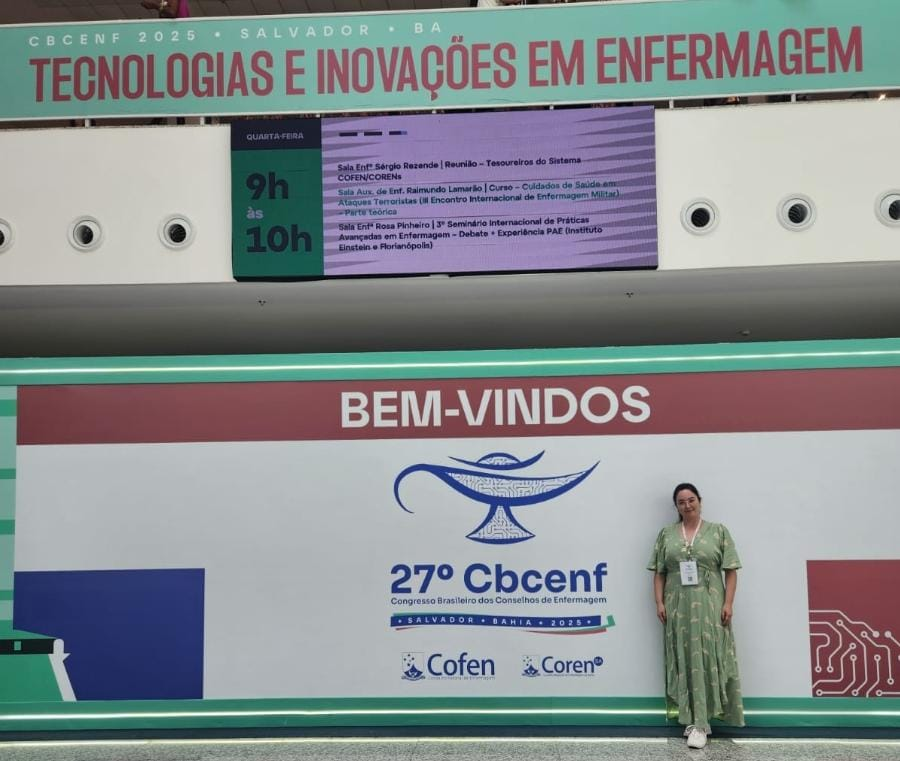 A Profa. Dra. Juliana Gonçalves Silva de Mattos, coordenadora do curso de Enfermagem do UNICERP, participou do 27º Congresso Brasileiro dos Conselhos de Enfermagem (CBCENF), realizado em Salvador (BA). O evento é considerado o maior da América Latina na área, reunindo milhares de profissionais, docentes, pesquisadores e estudantes de enfermagem de todo o país.