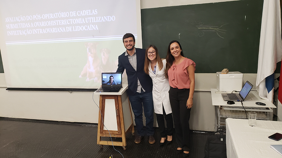 O trabalho foi intitulado como "Avaliação do pós-operatório em cadelas submetidas à ovariohisterectomia utilizando infiltração intraovariana de lidocaína", tendo como bases teóricas a linha de pesquisa Anestesiologia e Cirurgia.