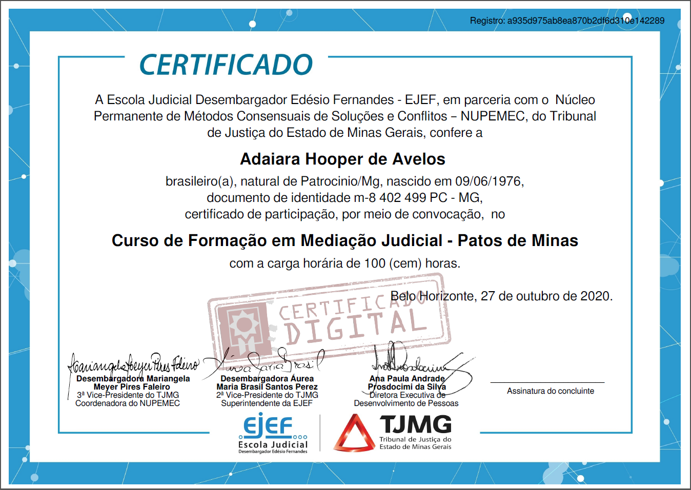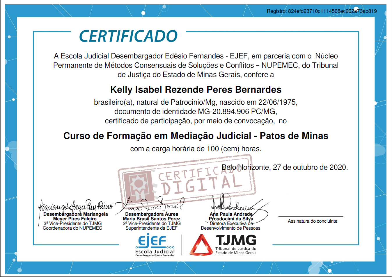 Contudo é sabido que os conflitos existem desde os primórdios, não é algo que vem da contemporaneidade, e para amenizar as angústias, ou pelo baixo custo, muitas pessoas já buscam a conciliação ou a mediação como forma de resolução dos conflitos. O objetivo central da conciliação e da mediação é trazer a paz social, através do diálogo entre as pessoas envolvidas, reconstruindo laços já existentes anteriormente e então, solucionando os conflitos. Nesse sentido, o UNICERP se destaca sendo polo de referência na busca de conhecimento amplo dessa área de estudo. Por meio do apoio e parceira da instituição UNICERP e da fundação educacional FUNCECP, a professora e coordenadora do PaPre-Unicerp, Kelly Isabel Rezende Peres Bernardes e pela discente do curso de direito Adaiara Hooper de Avelos, tiveram a oportunidade de participar do Curso de Formação de Mediadores e Conciliadores-TJMG, em Patos de Minas de 09 a 13 de setembro de 2019 (Fase teórica), estendendo esta parceria incondicional do UNICERP e TJMG ambas puderam concluir a fase prática (100 horas) ocorrida na Comarca de Patrocínio, e no PAPRE/ Núcleo de Prática Jurídica do UNICERP. Foi realmente evidente, necessário e não seria possível esta conclusão, sem o apoio dispensado. Portanto, a Profesora Kelly e discente Adaiara, receberam nessa semana a certificação do NUPEMEC/TJMG, com formação técnica de mediadoras e conciliadoras.