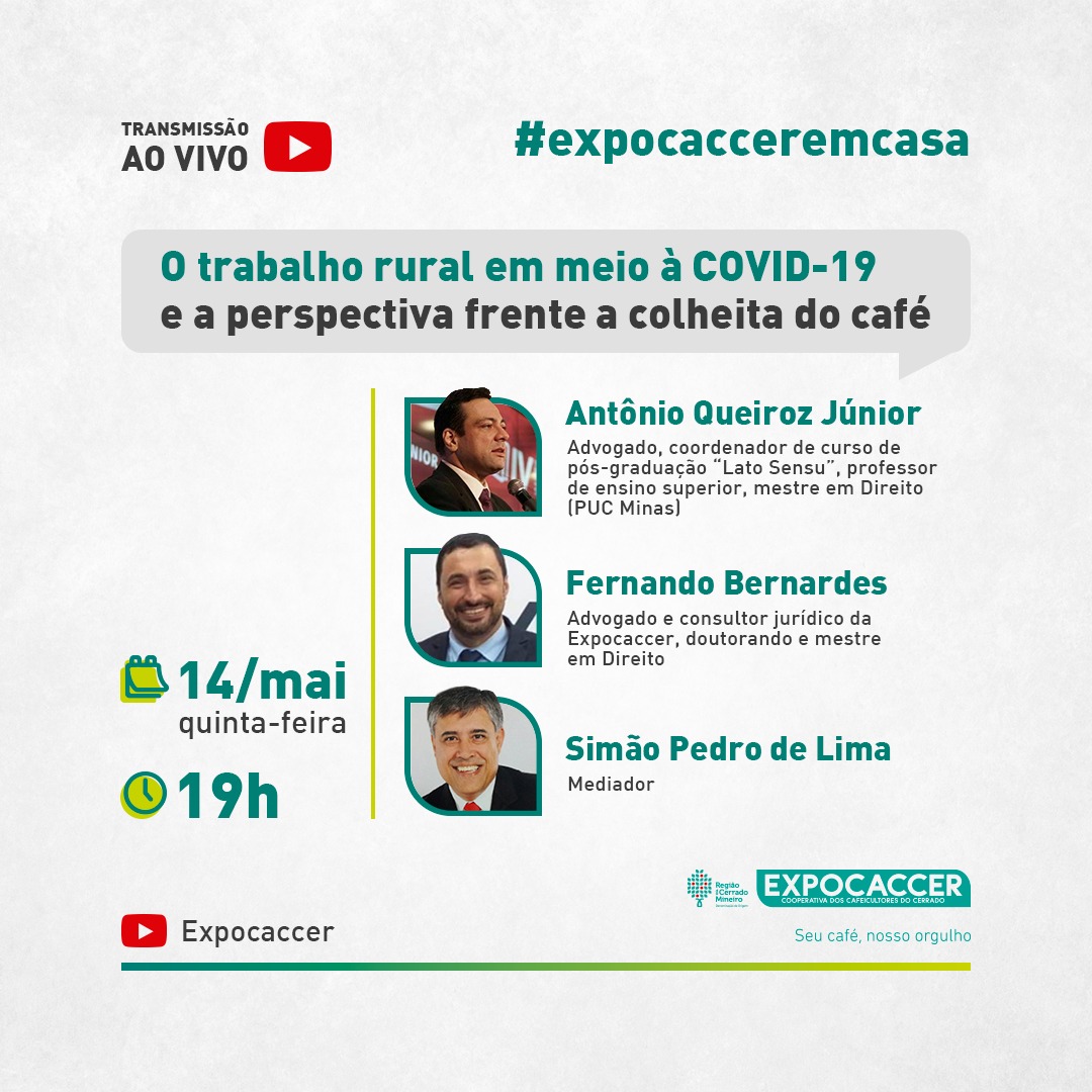 O trabalho rural em meio à Covid-19, este é o tema da #LiveExpocaccer desta quinta-feira (14/05).