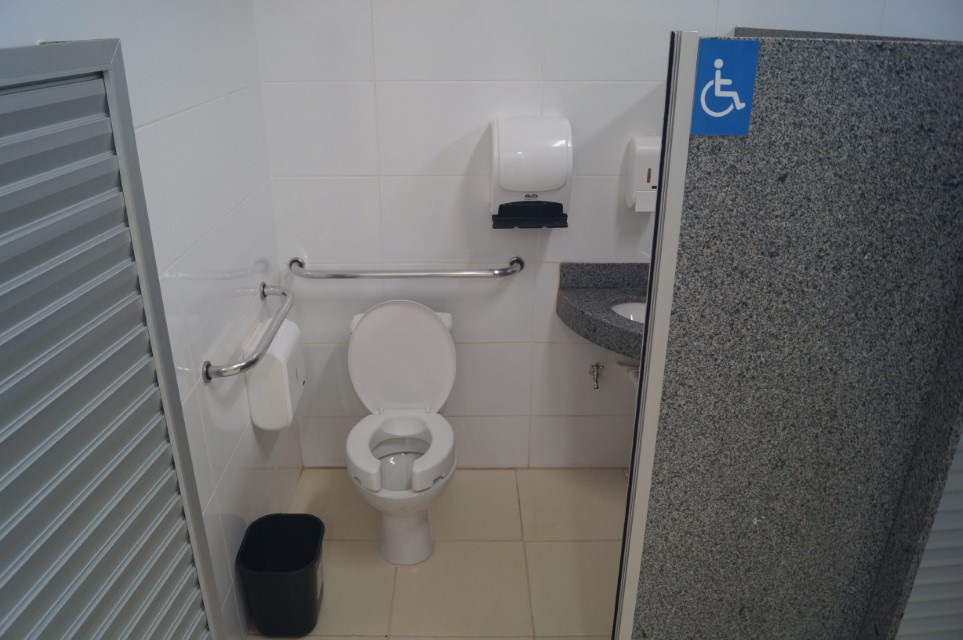 O campus já tem instalados diversos aparelhos de acessibilidade, com vasos sanitários adequados, banheiro familiar, corrimãos, rampas, estacionamentos acessíveis, dentre outros.
