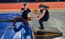 Noções básicas de acrobacias (rolamentos, estrelas e equilíbrio);