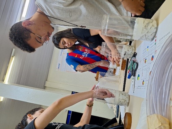 Na ocasião, após uma explicação teorica, os alunos fizeram uma maquete contendo uma representação dos horizontes. Prática aliada a teoria.