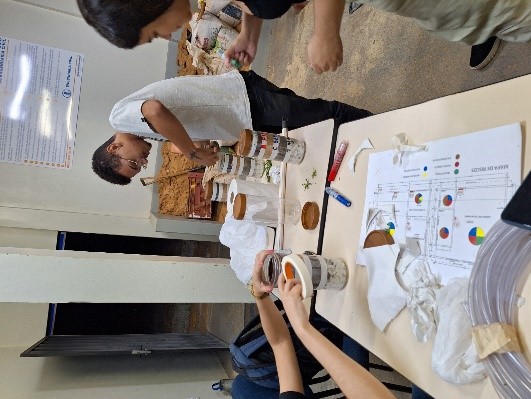 Os alunos aprenderam os conceitos básicos sobre os horizontes do solo, fundamental para o conhecimento de cada camada que compõem um solo e suas características próprias. Para a construção civil é de suma importância que todo o solo seja estudado antes de qualquer obra.