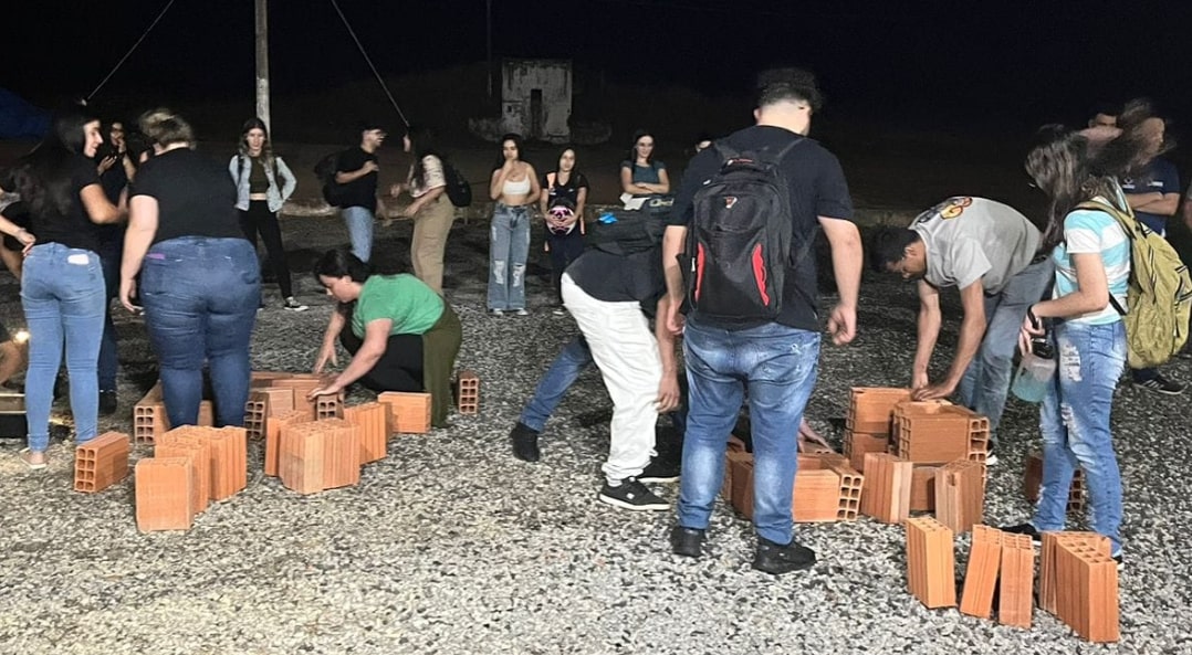 Este trabalho será voltado para os alunos dos cursos de Engenharia Civil e Arquitetura e Urbanismo. A metodologia consiste em uma oficina/concurso de assentamento de blocos cerâmicos, em um formato específico disposto no edital de inscrição. O objetivo é em unir os cursos, visto que são profissões que atuaram juntos no mercado de trabalho. Com isso, pretende-se estimular os alunos a praticarem o trabalho em equipe, desde a faculdade, melhorando requisitos profissionais como: capacidade de coordenação de equipe, liderança, respeito e união. Além de aprimorarem alguns conceitos sobre materiais de construção civil, como manejo de blocos cerâmicos, prumo de alvenaria, preparação de argamassa de assentamento, e desperdício de materiais em obras. O diferencial deste trabalho está na composição das equipes, que totalizam até 6 alunos cada, tendo obrigatoriamente, em cada equipe pelomenos 1 integrante de cada curso.