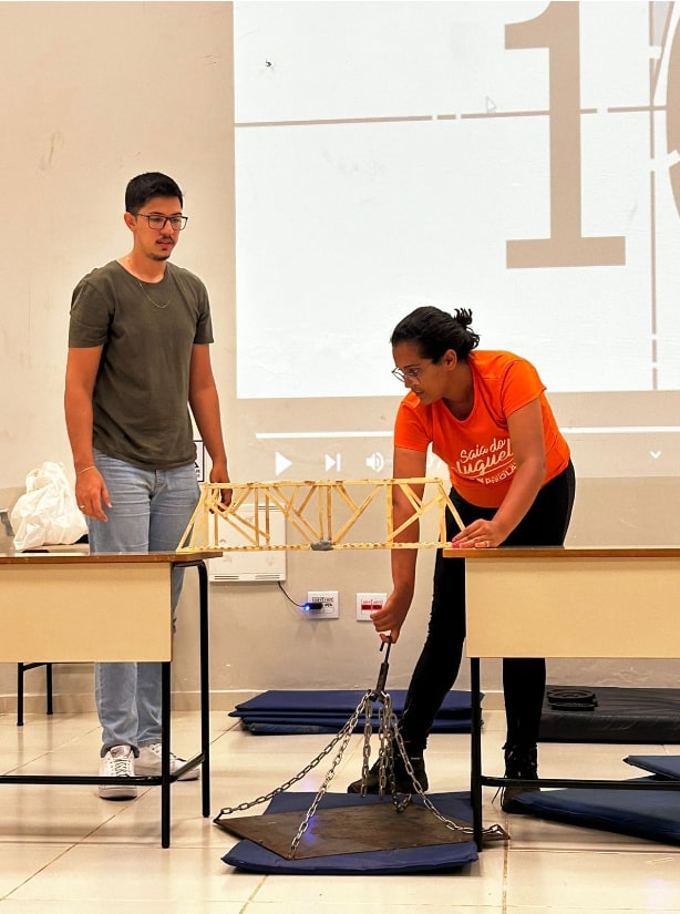 O presente trabalho, intitulado como “Concuso de Pontes de Palito de Picolé”, será realizado para os alunos dos cursos de Engenharia Civil e Arquitetura E Urbanísmo. O trabalho consiste em um concurso, onde os participantes terão que apresentar uma ponte, contruída com material de palitos de picolé, (cujas especificações mais detalhadas estarão no edital de inscrição ), e a mesma será testada a resistência, coma colocação de posos de forma gradual. A ponte vencedora será a que aguentar mais cargas sem se romper. O trabalho permite aos alunos colocarem em prática todo o conhecimento teórico adquirido sobre o comportamento de estruturas, e tem como base as matérias de mecânica das estruturas, teorias das estruturas e resistência dos materiais.