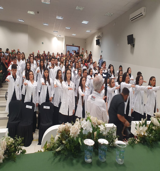 A cerimônia do jaleco é uma forma de mostrar para toda a comunidade o compromisso do aluno para com a formação e sua futura profissão.