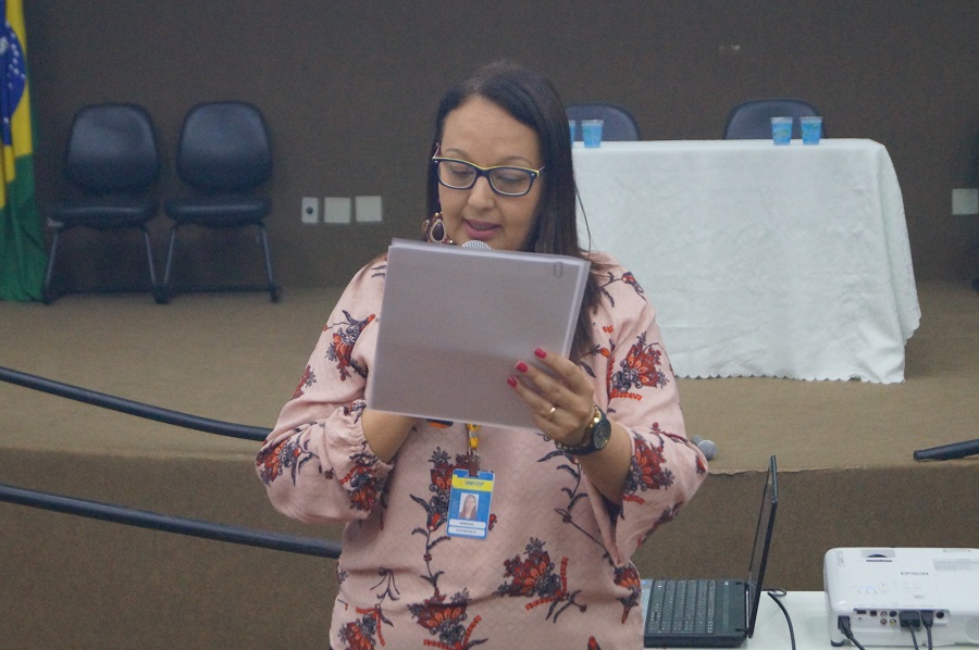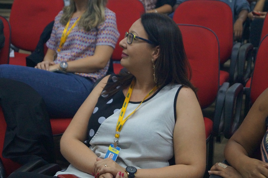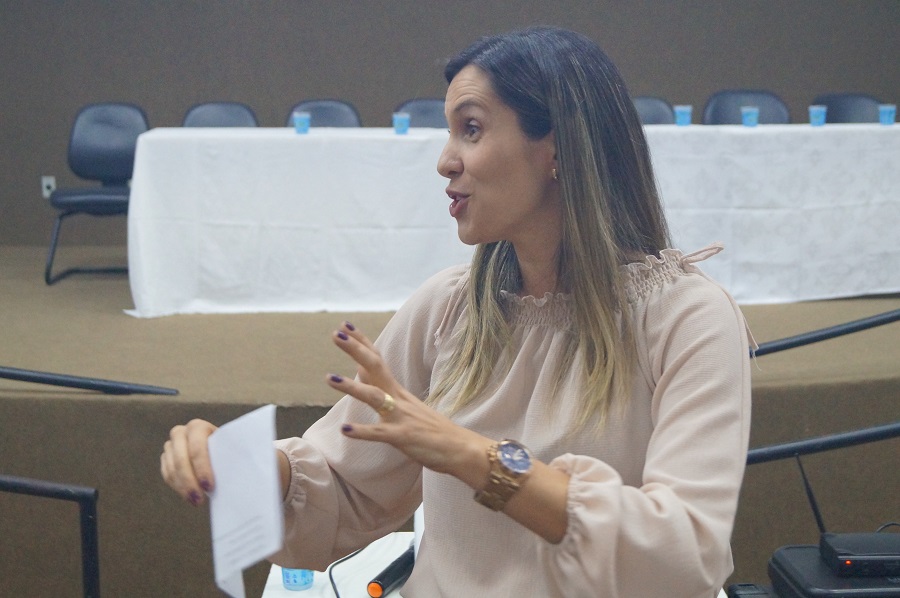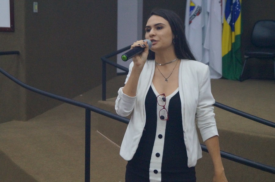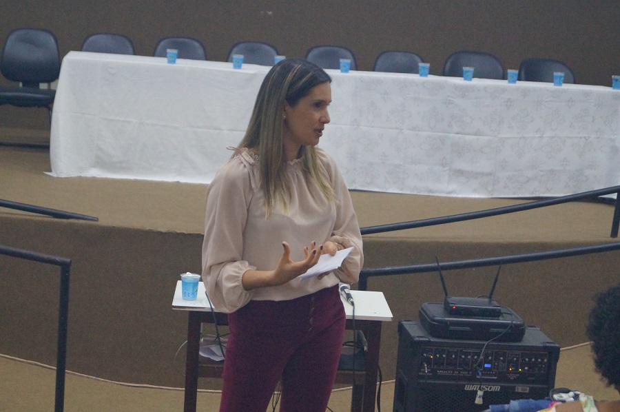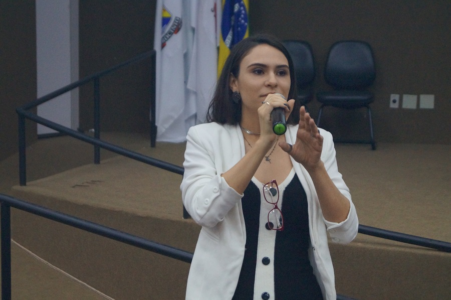 A psicóloga Núbia Fernanda apresentou a interface da psicologia em conjunto com as normas jurídicas.