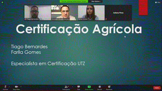 A oportunidade foi única, com a presença de dois convidados especiais, os acadêmicos do curso de Agronomia do Unicerp, Farlla Gomes (8º período) que é Agente de Certificação do Departamento de Sustentabilidade da EXPOCACCER e Tiago Bernardes (2º período), que é especialista em Certificação UTZ e consultor / proprietário da empresa Cerrado Consult Soluções no Agronegócio.