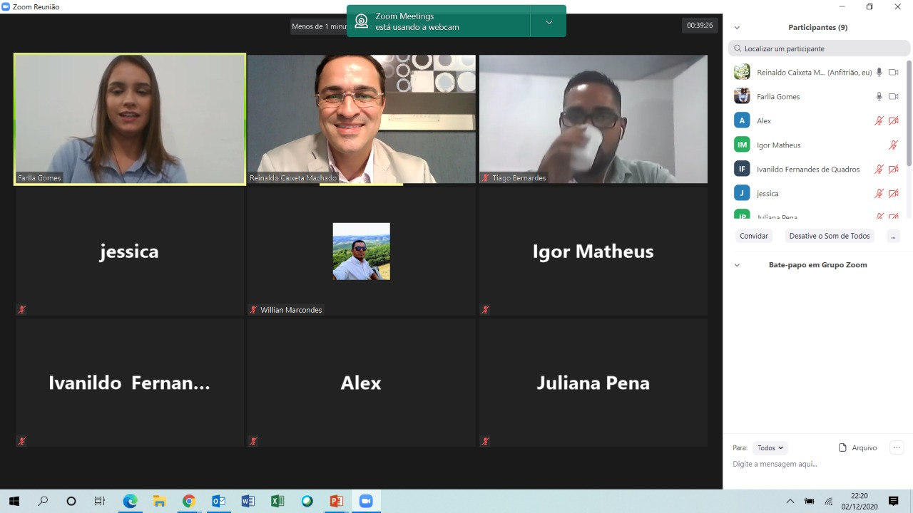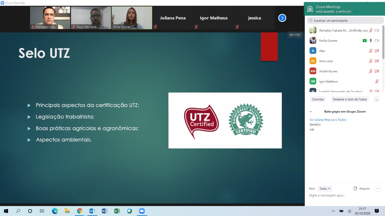 Foi realizada no dia 02/12/2020 uma mesa redonda tendo como participantes os alunos do 6º período do curso de Cafeicultura do Unicerp, liderados pelo professor Me. Reinaldo Machado, na disciplina de Certificação do Café.