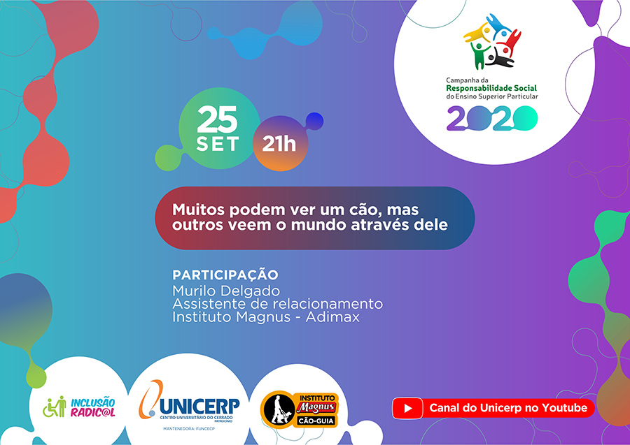 Logo após, às 21h, Murilo Delgado, assistente de relacionamento do Instituto Magnus - Adimax, ministrará a live "Muitos podem ver um cão, mas outros veem o mundo através dele".