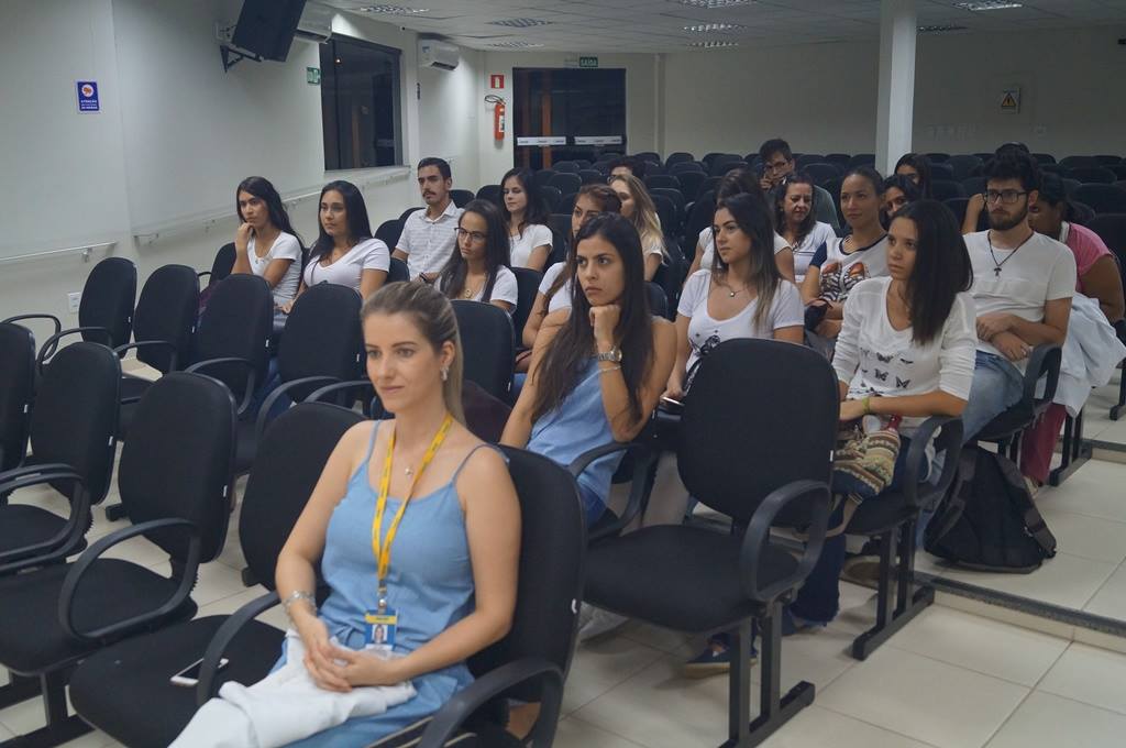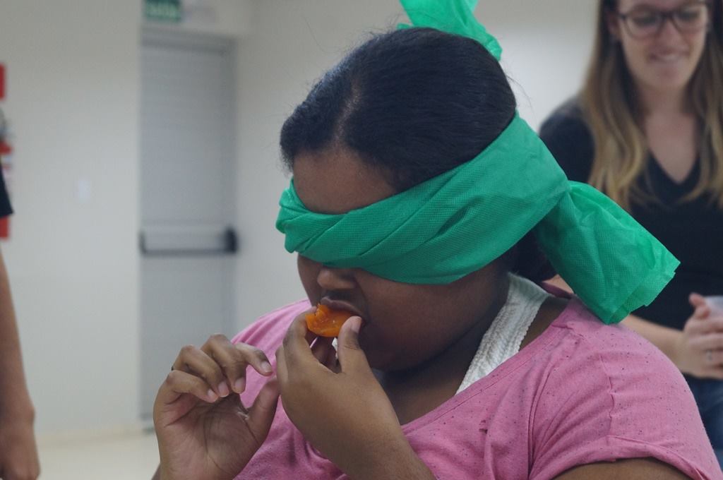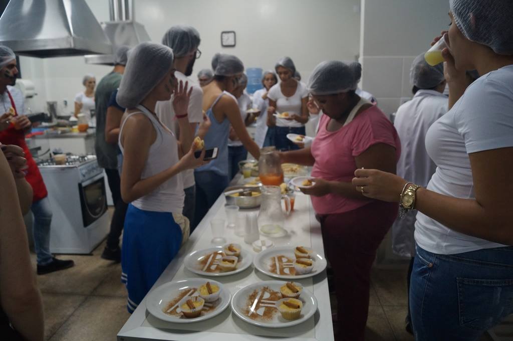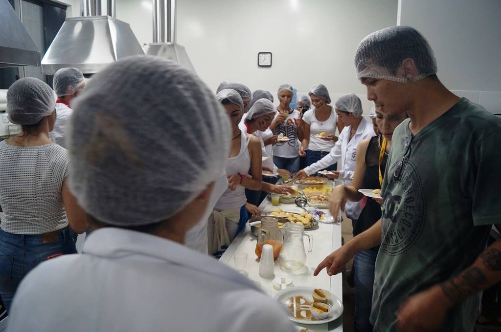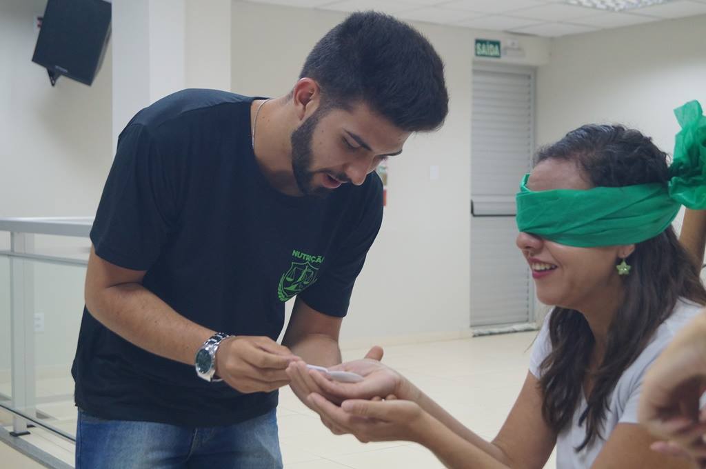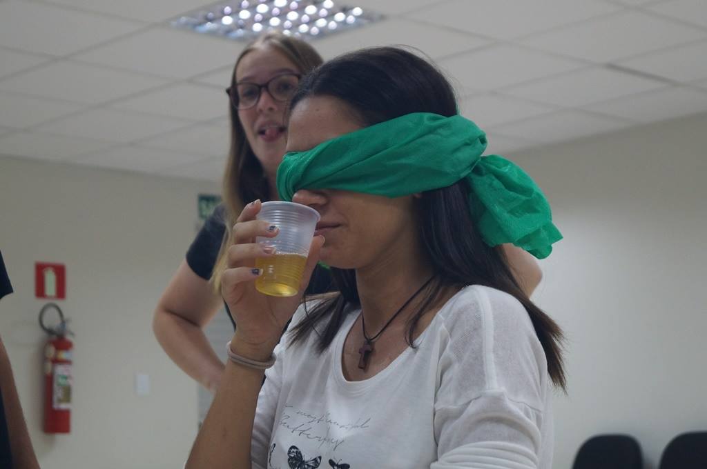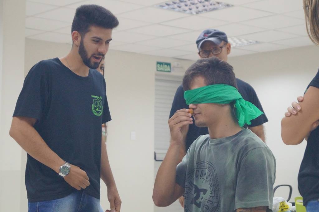 O 3º período utilizou o espaço do Auditório I do campus universitário para organizar uma oficina do sabor. Os novos alunos experimentavam pratos de olhos vendados e deveriam adivinhar os ingredientes.