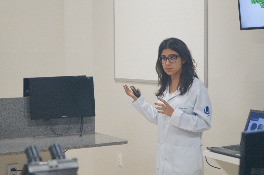 No dia 5, os alunos puderam desfrutar da dinâmica acerca da Drosophila melanogaster para teste de drogas para doenças neurais e inflamatórias, dirigida pelas professoras Dra. Jéssica Regina Costa Silva e Me. Luiza Diniz Ferreira Borges.