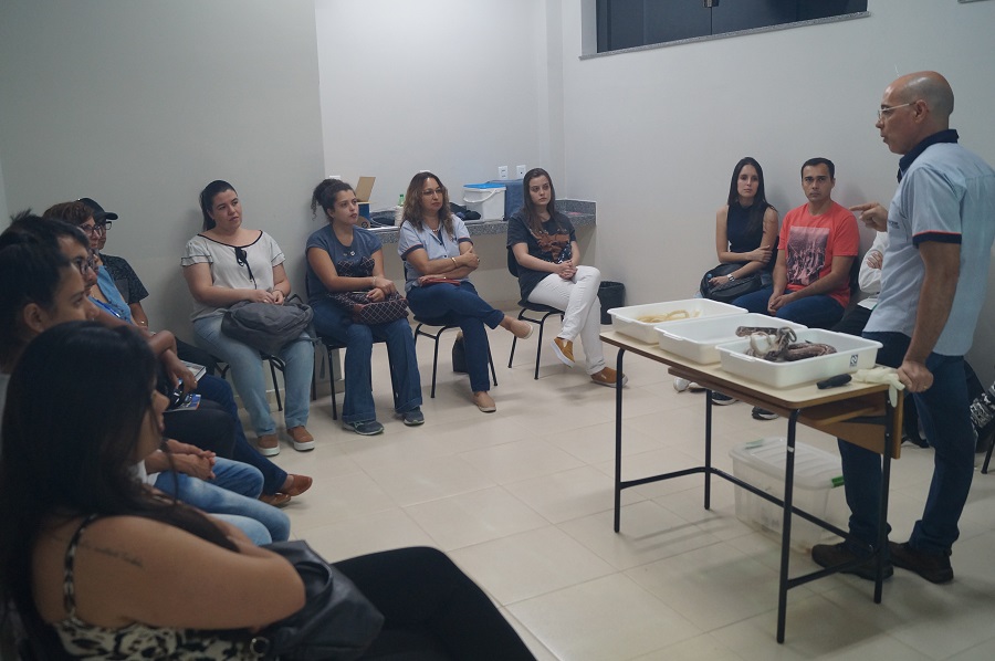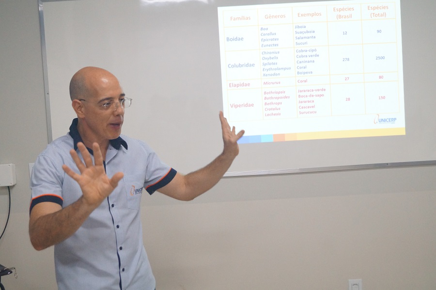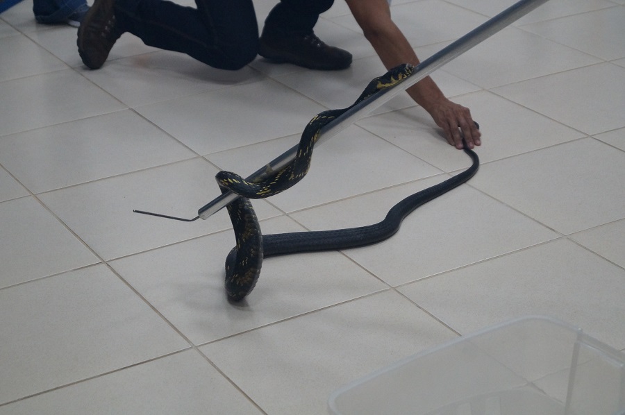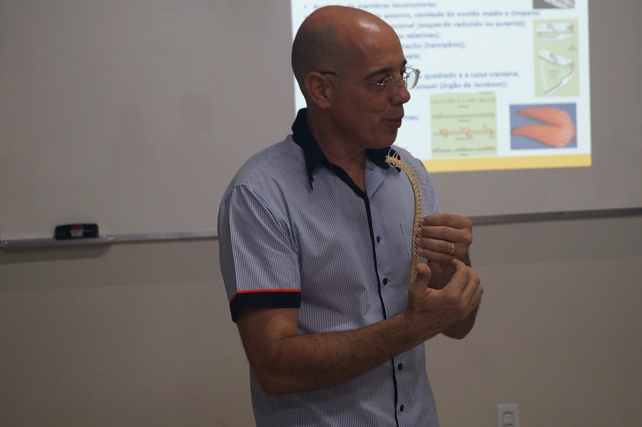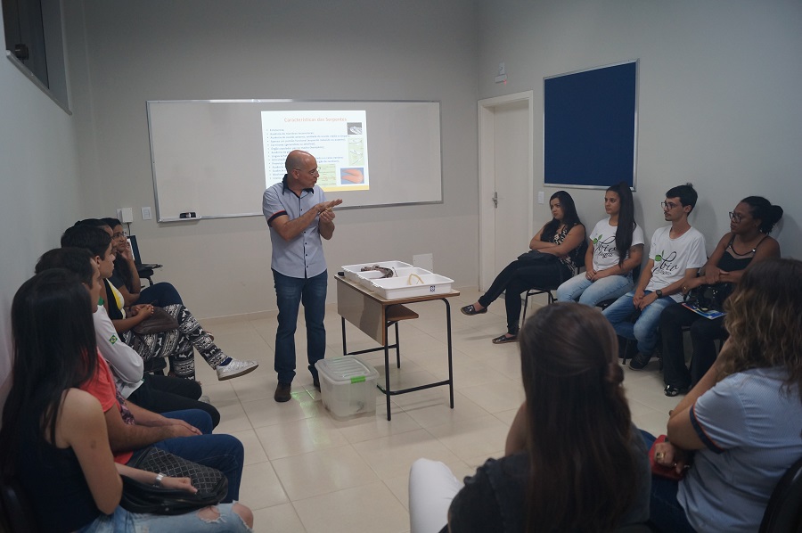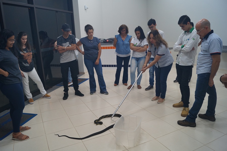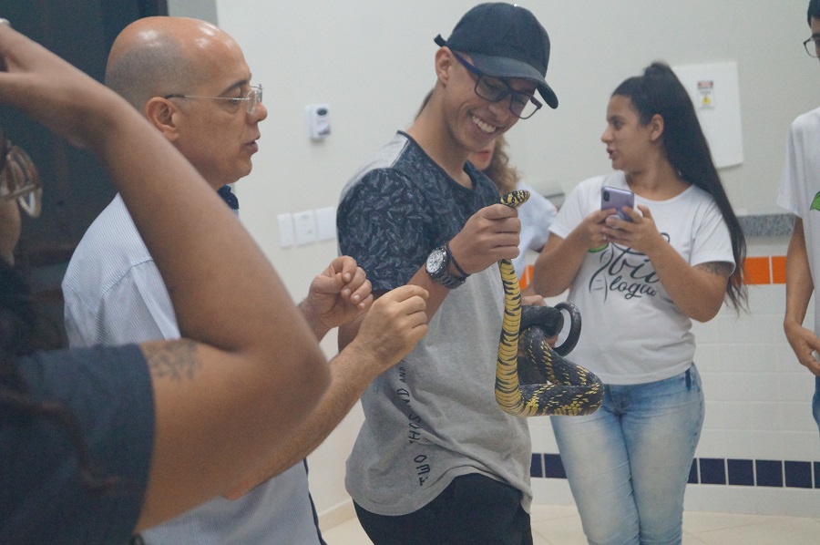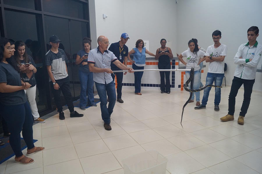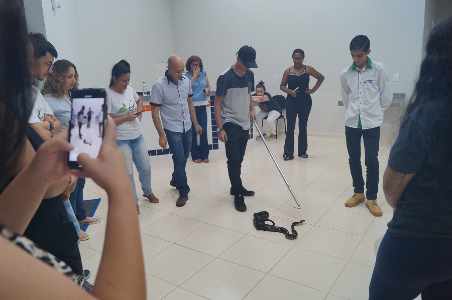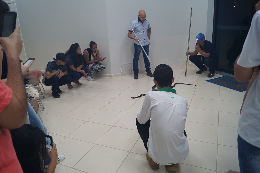 O encontro foi encerrado com oficina ministrada pelo professor Dr. Wagner Antonio Bernardes e o aluno Murilo Luiz dos Santos. O tema da atividade foi o Manejo de Serpentes