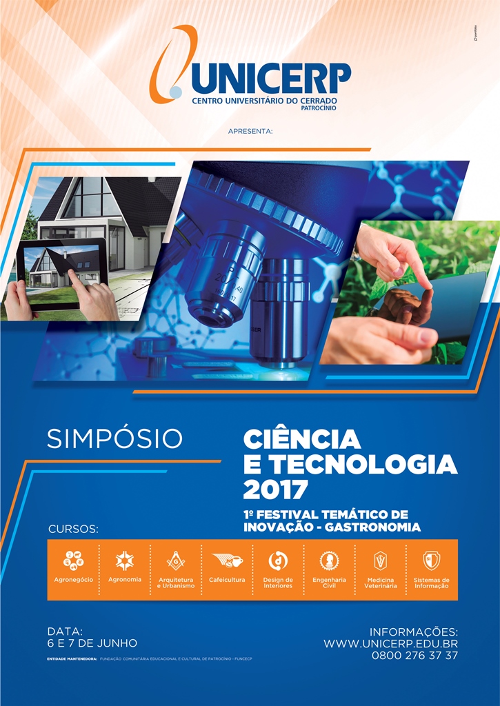 O Simpósio de Ciência e Tecnologia é promovido pelos cursos de Agronegócio, Agronomia, Arquitetura e Urbanismo, Cafeicultura, Design de Interiores, Engenharia Civil, Medicina Veterinária e Sistemas de Informação do Centro Universitário do Cerrado Patrocínio.