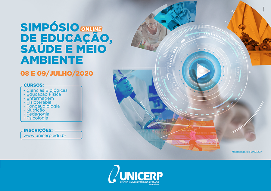 Na próxima semana, nos dias 8 e 9 de julho, ocorrerá o Simpósio de Educação, Saúde e Meio Ambiente do UNICERP 2020. O evento é uma organização dos cursos de Ciências Biológicas, Educação Física, Enfermagem, Fisioterapia, Fonoaudiologia, Nutrição, Pedagogia e Psicologia do Centro Universitário do Cerrado Patrocínio.