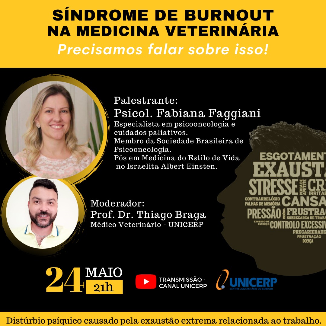 Nesta segunda-feira, dia 24 de maio, a partir das 21h, o curso de Medicina Veterinária realizará live sobre o tema “ Síndrome de Bournout na Medicina Veterinária: Precisamos Falar Sobre Isso”.