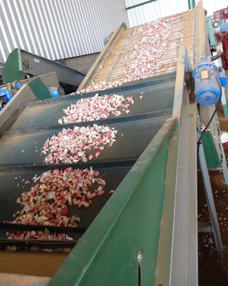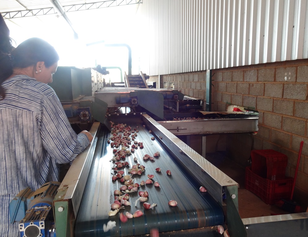Os alunos puderem acompanhar a finalização do processo de vernalização do alho-semente e os procedimentos de limpeza, seleção, classificação em peneiras e plantio, realizado manualmente.