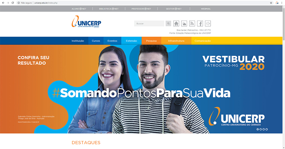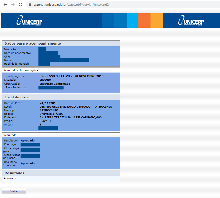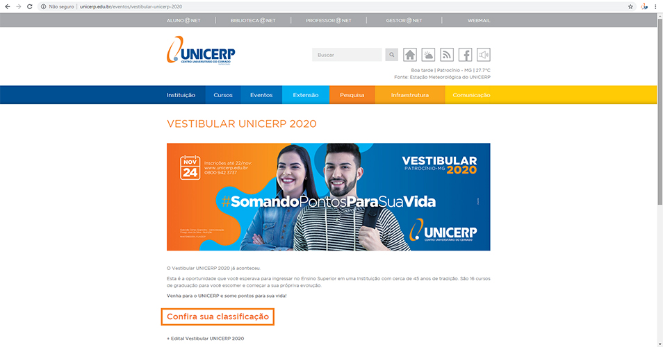 O Centro Universitário do Cerrado Patrocínio informa aos candidatos que participaram do Vestibular UNICERP 2020 que a classificação já está disponível na página de acompanhamento de inscrição.