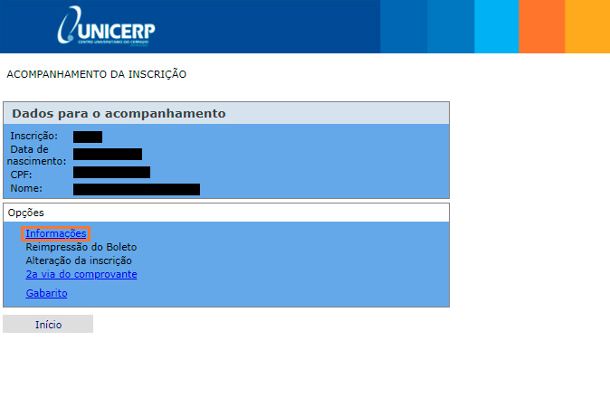 Para acessá-la, o candidato deverá entrar na página do Vestibular, clicar em "Acompanhamento da inscrição" e depois em "Informações".