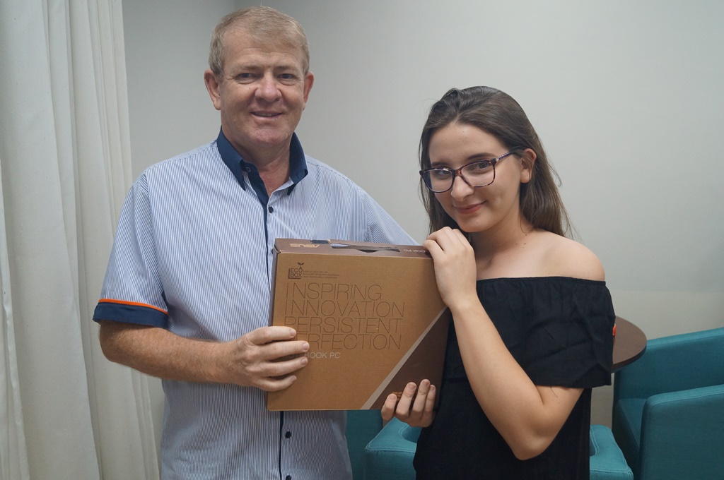 O UNICERP presenteou na noite desta terça-feira, 17, a vencedora de promoção realizada durante a UNIMOSTRA 2017. Olívia Borges recebeu das mãos do diretor de Ensino de Graduação, Prof. José Ferreira Nunes, um notebook da marca Asus.