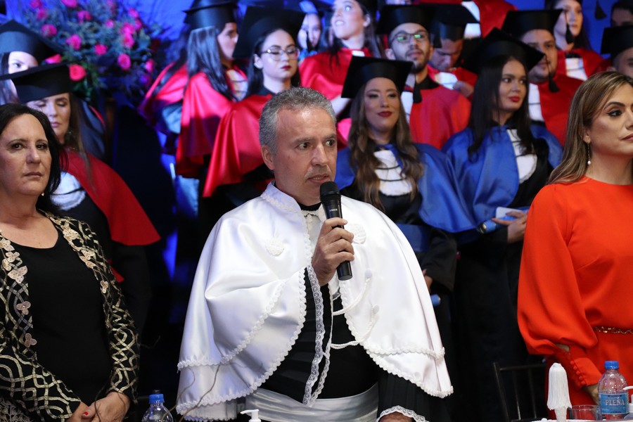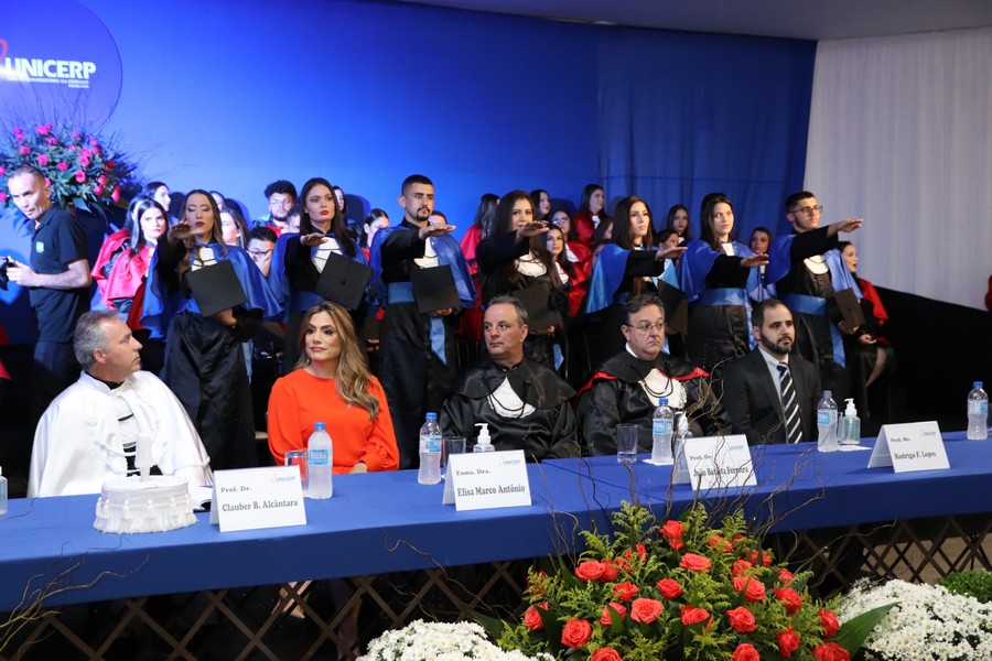 A solenidade foi presidida pelo reitor do UNICERP, Prof. Dr. Clauber Barbosa de Alcântara. Estiveram presentes a Profa. Me. Ieda Pereira de Magalhães Martins, membro do Conselho Curador da Fundação Comunitária Educacional e Cultural de Patrocínio, mantenedora do UNICERP; Prof. Dr. Aquiles Junior da Cunha, pró-reitor de Ensino, Pesquisa e Extensão; Wanderson Almeida Brazão, superintendente da FUNCECP; Maria Abadia Gonçalves, secretária acadêmica; Prof. Dr. João Batista Ferreira, coordenador dos cursos de Administração e Ciências Contábeis; Prof. Carlos Alberto Molina; Prof. Me. Rodrigo Fernando Lopes. A paraninfa das turmas é a diretora do Foro da Comarca de Patrocínio, Juíza Elisa Marco Antônio.