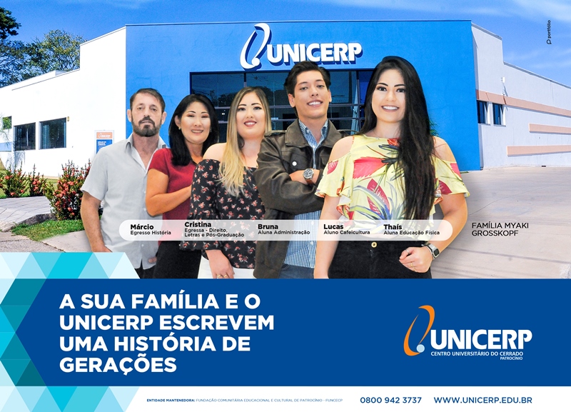 A partir deste mês o Centro Universitário do Cerrado Patrocínio inicia uma nova campanha de valorização de egressos e alunos, com o mote “A sua família e o UNICERP escrevem uma história de gerações”.
