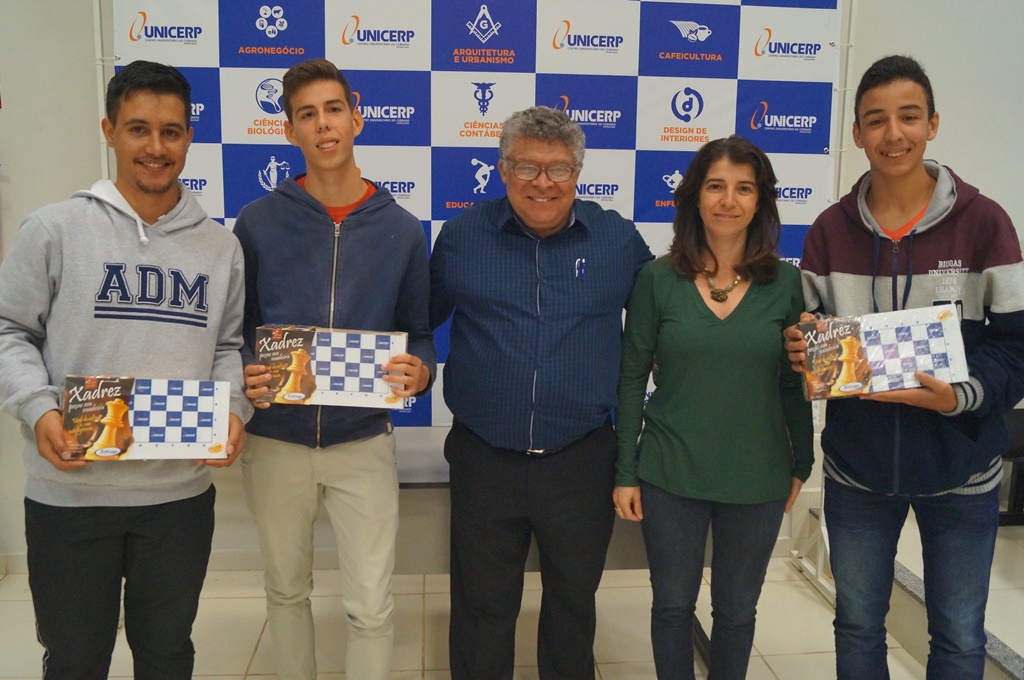 Os campeões foram Eduardo Samuel da Silva (Colégio Prof. Olímpio dos Santos), Lucas Correa Costa (Administração UNICERP) e Victor Pereira Araújo (Escola Estadual Dom Lustosa). Os três receberam das mãos do árbitro da competição e da professora do UNICERP Ma. Érika Maria de Souza Vissoci tabuleiros de xadrez personalizados do UNICERP e da Toys Mania.