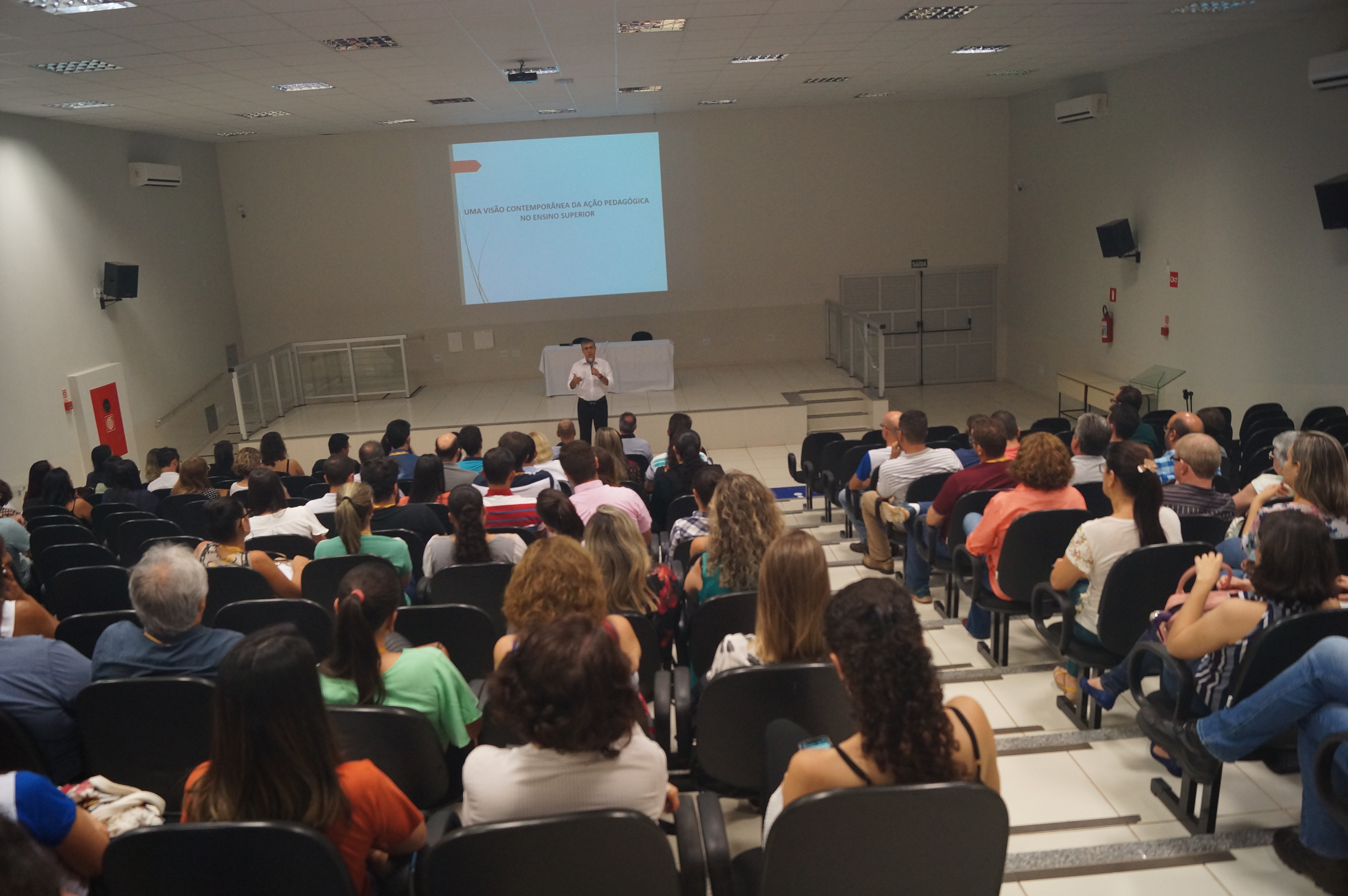 A abertura foi realizada pelo Reitor, Professor Doutor Clauber Barbosa de Alcântara, que destacou a importância do evento para a preparação dos professores quanto aos desafios e oportunidades que o Centro Universitário terá ao longo de 2020.